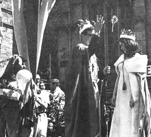 There was a queen crowned, by classmate Richard Sawaya. And the university administration was represented by George Drury, SJ, director of university personnel services, and the person who had brought “charges” against Heights editors for the public appearance on campus of birth control activist Bill Baird, only a couple of weeks before. If someone can explain the role of “Naked Ned,” I’d welcome it.