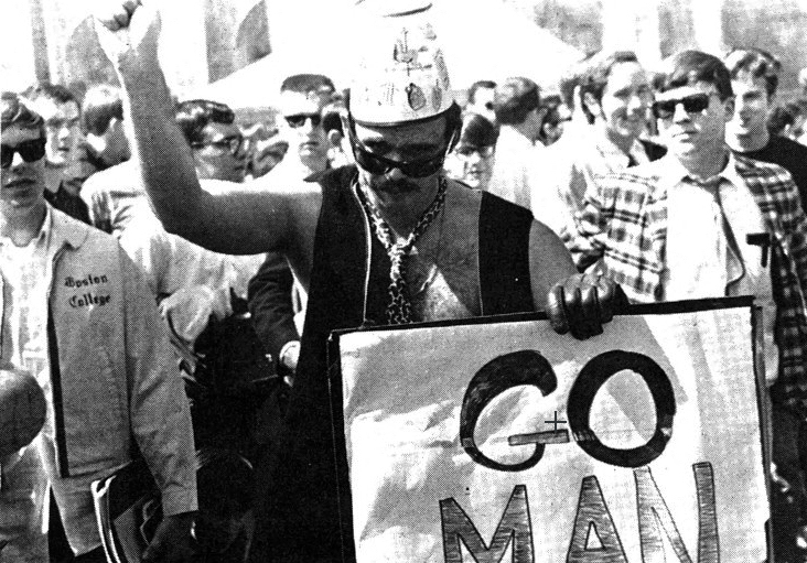 It preceded the more famous “Summer of Love” in 1967 and certainly cannot be credited with inspiring that apex of hippiness, but BC’s “Gentle Monday” — May 1, 1967 — was an expression, albeit muted, of similar sentiments. As the cartoon above implied, Gasson Hall was going to go from straight to groovy that day.
